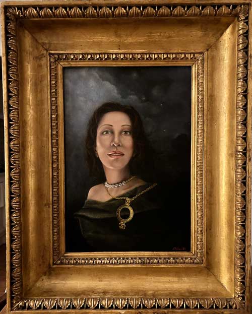 This portrait-commission depicts the emotional, intellectual connection my esteemed Patron has to beauty, culture and tradition and …as a consequence…to my art.