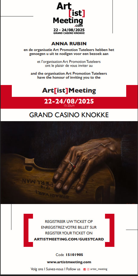 Discover a unique selection of the works by Anna Rubin during ArtistMeeting, the art fair for artists from 22nd-24th August 2025 at the Grand Casino Knokke. Open daily from 3-8pm.