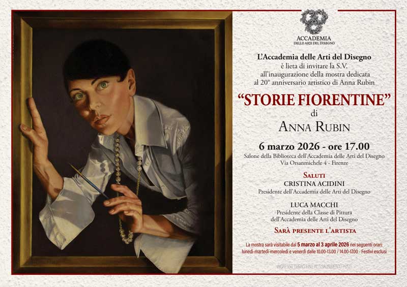 The oldest, most prestigious Art Academy in the world, AADFI, founded by Vasari and Michelangelo in 1562 recognises Anna Rubin’s artistic achievement by hosting her Solo Exhibition from 6 March until 3 April 2026.